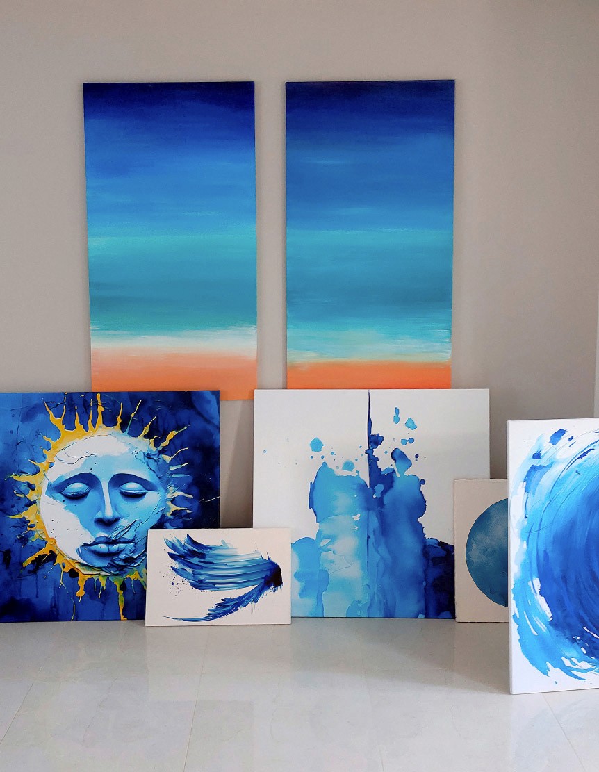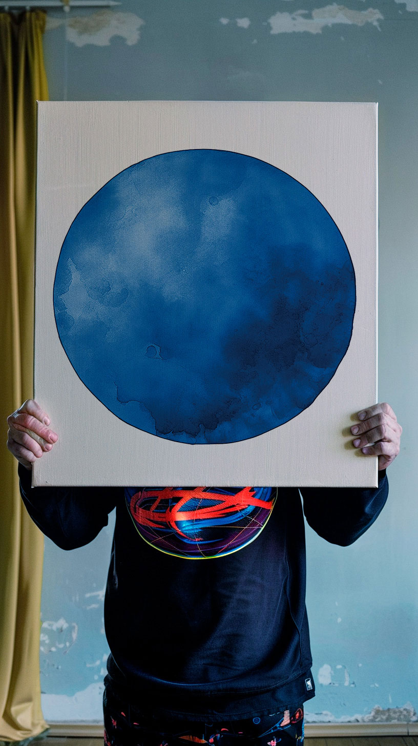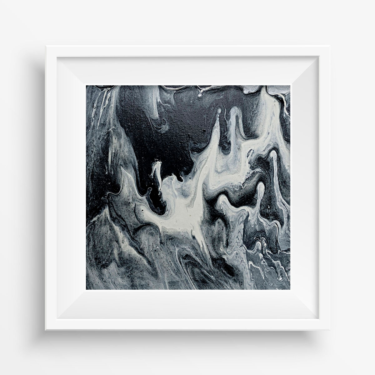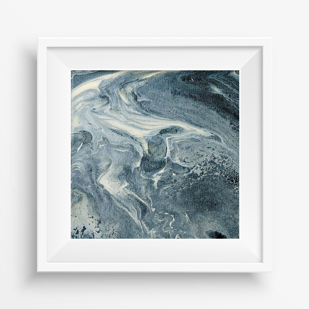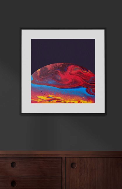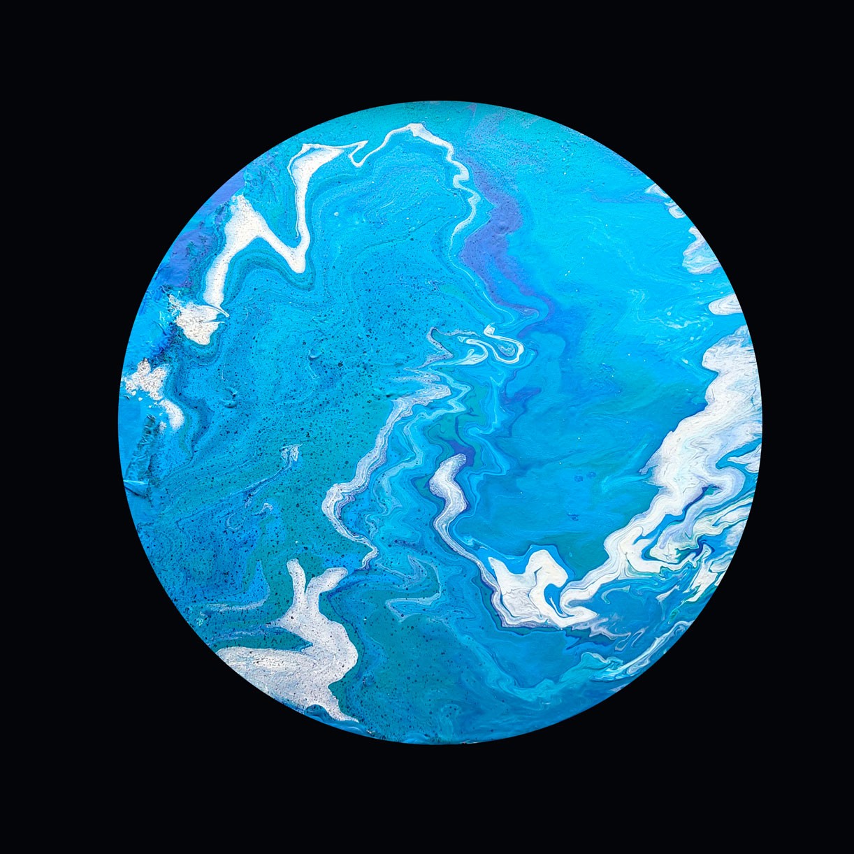 Using a fluid liquid-paint technique, this collection maps the surfaces of uncharted worlds and personal topographies. These pieces capture the fantastic, swirling textures of a galaxy born entirely from imagination.